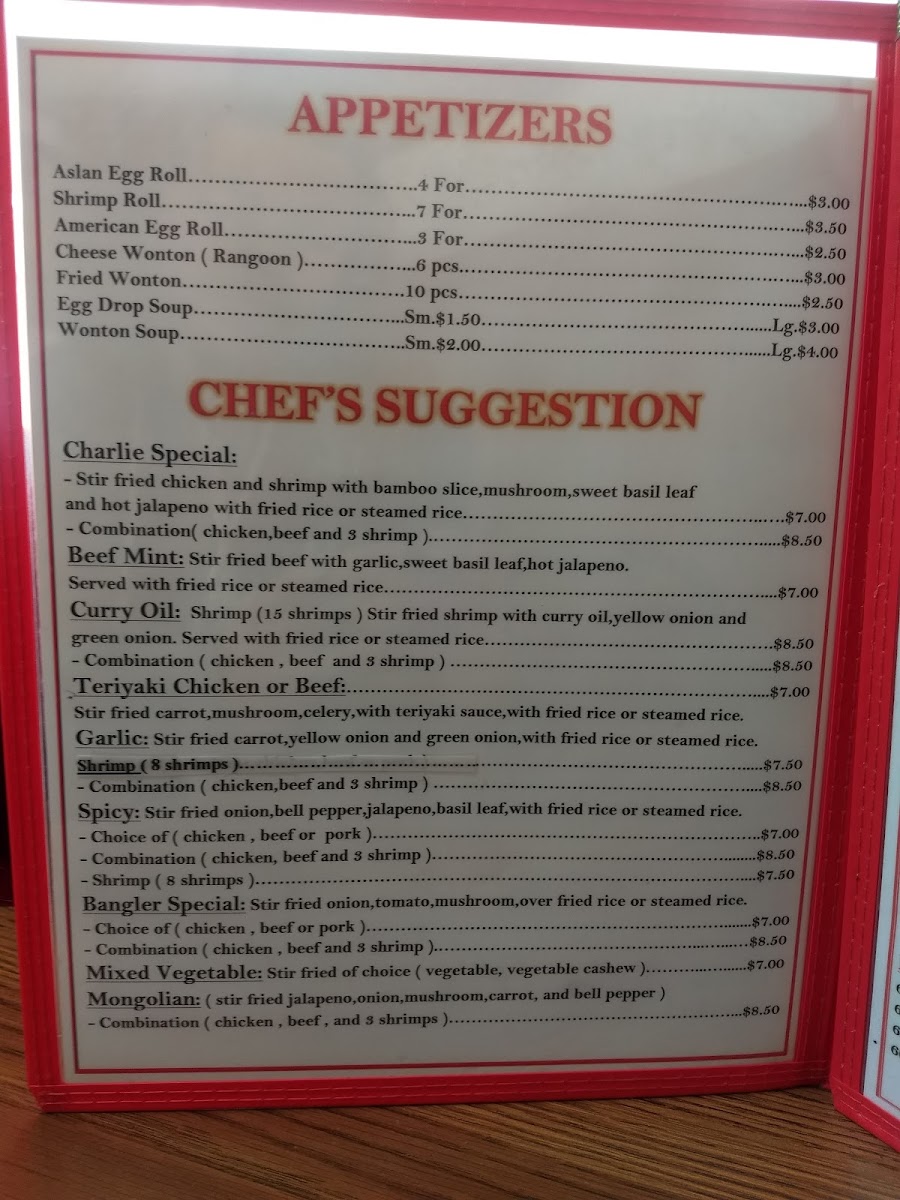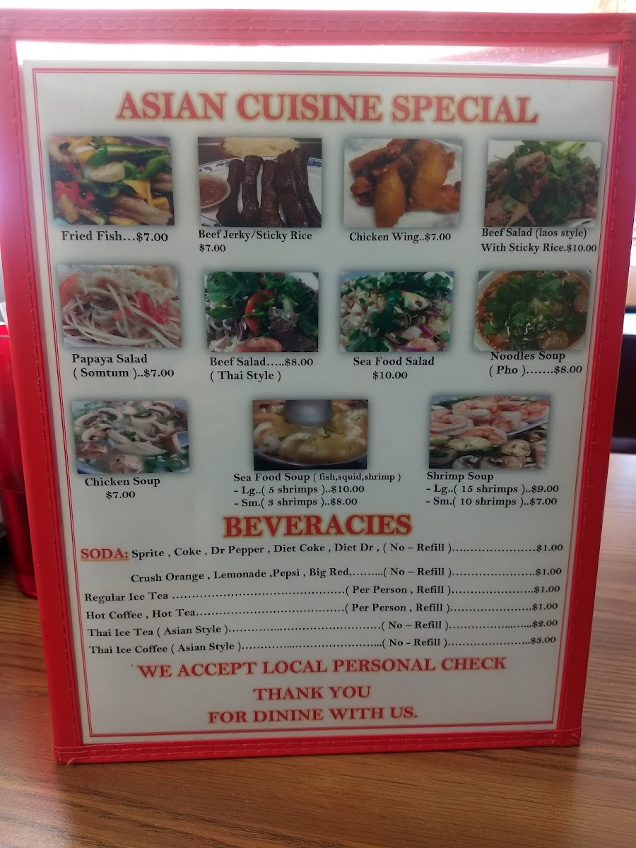 The menu at Asian Cuisine offers a straightforward and inviting selection of traditional Asian dishes, perfect for casual lunches, family dinners, or a relaxed evening out. You’ll find comforting classics like Chicken Curry and Beef Chow Fun alongside lighter options such as Shrimp Rolls and Shrimp Soup, making it easy to choose something that fits the moment and your mood.